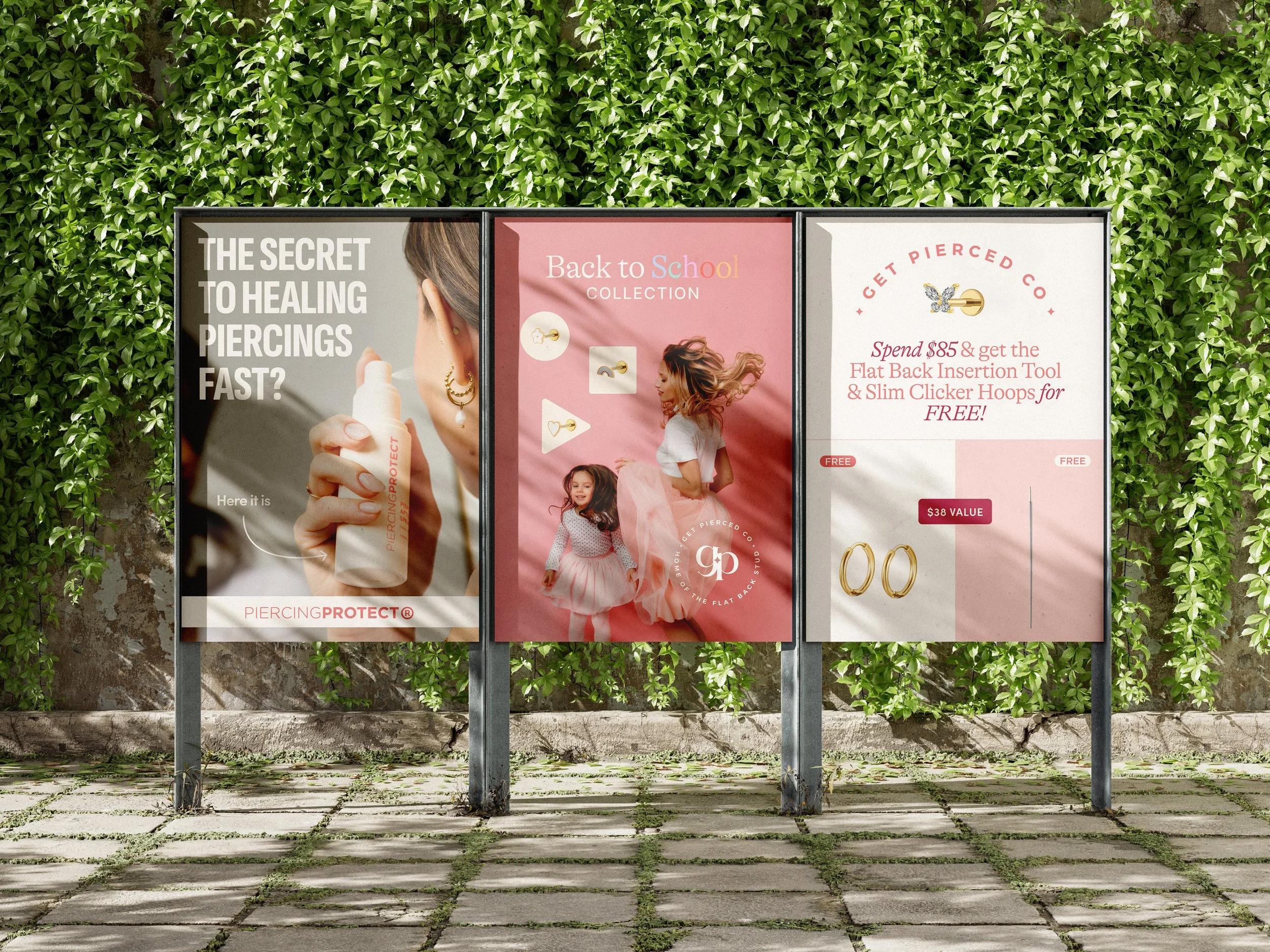 Over the course of multiple product drops and seasonal pushes, I partnered with Get Pierced Co to design a wide range of performance-driven ad creatives. From vibrant spring launches to evergreen promos, my goal was to consistently deliver scroll-stopping visuals that matched the brand’s bold, edgy identity—while also aligning with real ad performance goals.